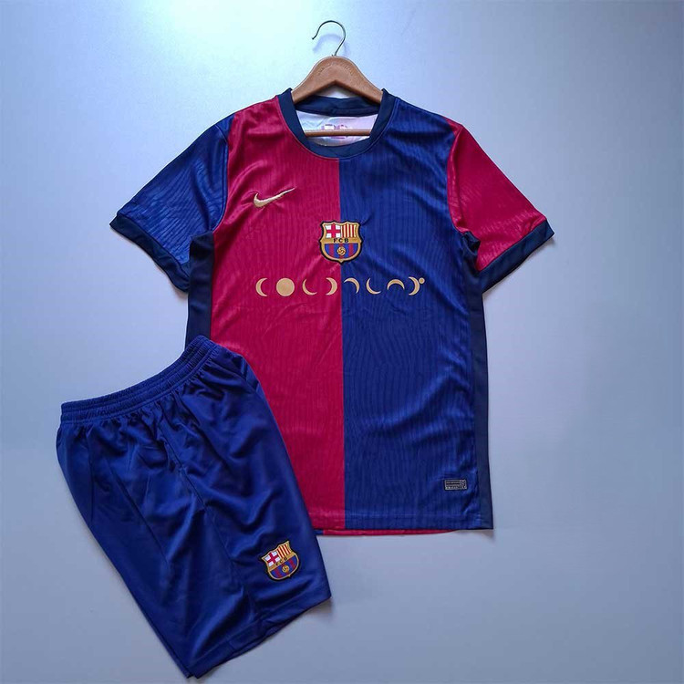 لباس اول بارسلونا 2025 هواداری با شورت طرح کلد پلی